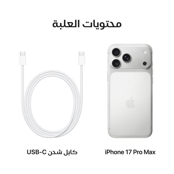 آيفون 17 برو ماكس 256 جيجابايت فضي 5G (eSim فقط) مع فيس تايم - نسخة الشرق الأوسط