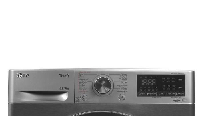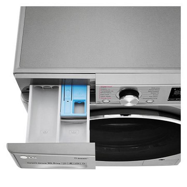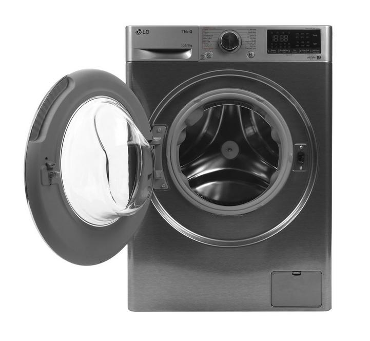 إل جي غسالة تعبئة أمامية، غسيل/تجفيف، 10.5كيلو/ 7كيلو، فضي