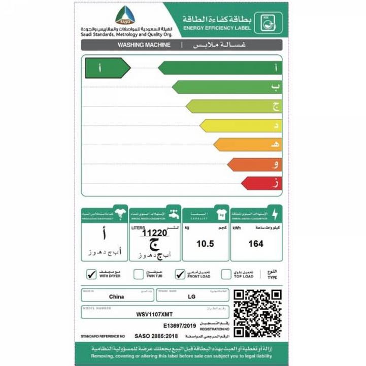 مواصفات المنتج آلة مزدوجة غسالة ومجفف في واحد سعة الغسالة 10.5 كجم الأمان أولا قفل الحماية للأطفال