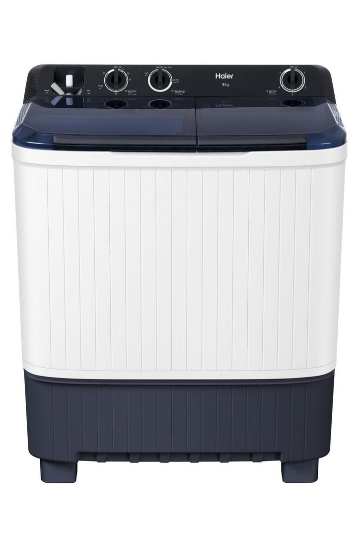 هاير غسالة حوضين، 8 كجم، تجفيف بالهواء، 2 برنامج، أبيض/ أزرق