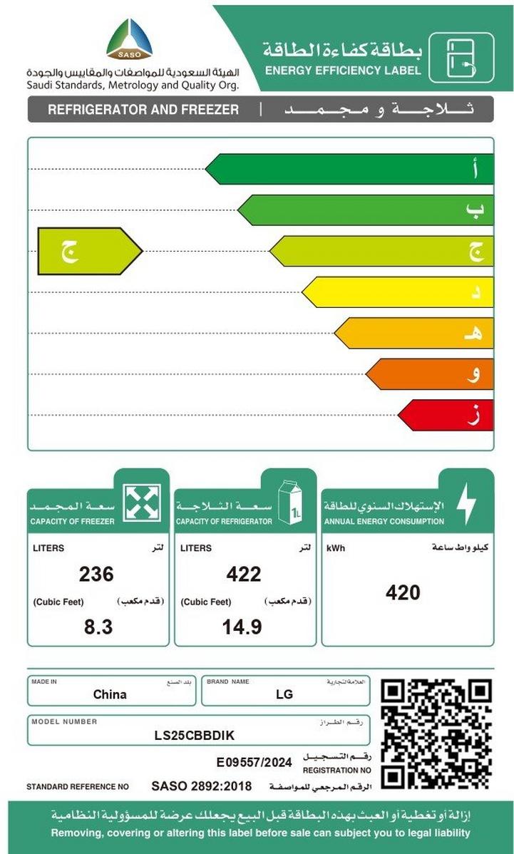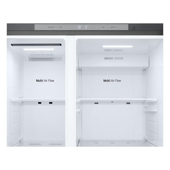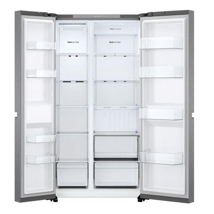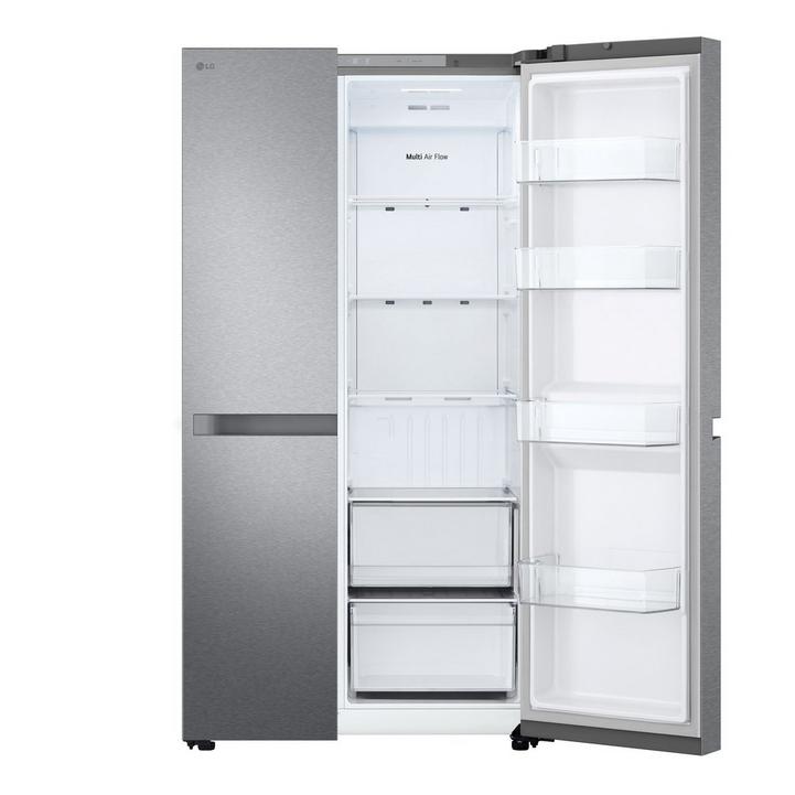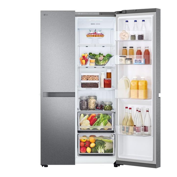 ال جي ثلاجه باب جانب باب 14.9 قدم، فريزر8.3 قدم، ضاغط عاكس زكي، بي سي ام فضي