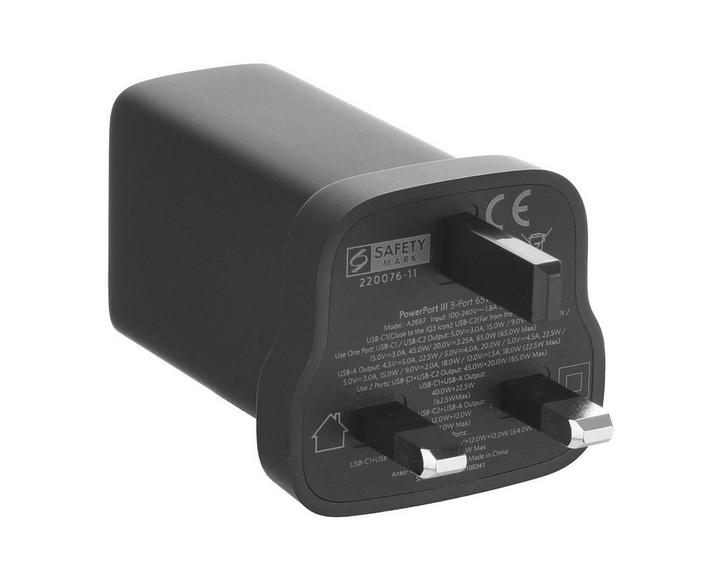 أنكر نانو 2 محول، 3 منافذ، 65 واط، أسود