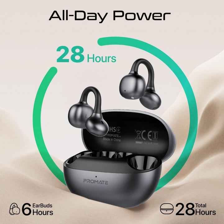 سماعات وايرلس من بروميت، قابلة للتثبيت على الاذن، بلوتوث 6.0، بطارية 28H، IPX4 مقاومة للتعرق