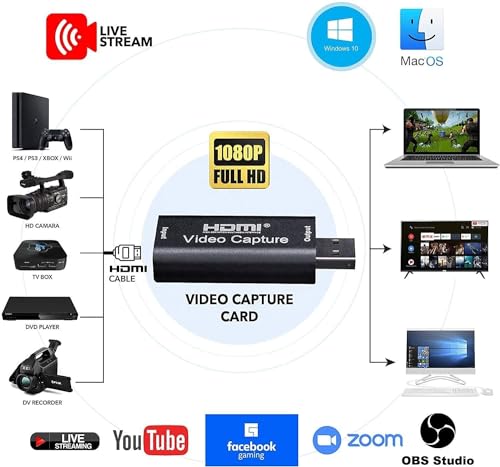 عالية الوضوح 1080 بكسل 60 إطار في الثانية: تدعم بطاقة التقاط الفيديو أقصى دقة الإدخال مع 3840 × 2160 عند 30 هرتز، أقصى دقة إخراج 1920 × 1080 عند 30 هرتز. يسجل على الفور فيديو عالي الدقة 60 إطار في الثانية مباشرة على القرص الصلب. لا يتطلب برنامج تشغيل: لا يلزم وجود برنامج تشغيل لبطاقة الالتقاط هذه، لذلك يمكنك استخدام الميزات المدمجة للبرنامج الحالي للحصول على تجربة سلسة. بما أن الجهاز متوافق مع معظم برامج الجهات الخارجية، يمكن توصيله وتشغيله لنظام التشغيل ويندوز وماك او اس اكس ولينكس. منفذ نقل عالي السرعة USB2.0 يجعل من السهل عليك أداء البث في الوقت الفعلي لتويتش ويوتيوب وOBS وبوتبلاير وفي ال سي. التوصيل والتشغيل: لا حاجة إلى مشغل أو مصدر طاقة خارجي، وبطاقة التقاط الألعاب مناسبة للألعاب منخفضة الاستجابة ويمكنها تلبية احتياجات الاجتماع. تؤدي بطاقة الالتقاط الصغيرة الحجم مباشرة إلى كابل USB لتجنب الاتصالات غير الضرورية. مشاركة الاجتماعات: بطاقة الالتقاط هي طريقة سريعة ومألوفة واقتصادية لمشاركة المحتوى في غرف الاجتماعات والاجتماعات عبر الإنترنت. يمكنك الاتصال بالعروض التقديمية بدون برنامج، ببساطة قم بتوصيله بجهاز لاب توب أو تابلت عبر HDMI لبدء المشاركة. التقاط ألعاب HDMI: بناءً على تقنية USB 2.0 عالية السرعة، يمكنك التقاط إشارات فيديو HDMI عالية الدقة لقناة الإشارة. بطاقة التقاط الألعاب مناسبة للأجهزة ذات مخرج HDMI، مثل أجهزة بلاي ستيشن 4 ووي يو وسويتش.