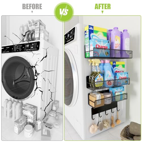 تحسين المساحة: يوفّر الرف المغناطيسي للغسالة حلاً ذكيًا ومبتكرًا للاستفادة القصوى من المساحة وتنظيم المستلزمات بسهولة. يتيح لك الاستفادة القصوى من المساحة المحيطة بالغسالة، محوّلًا منطقة كانت غير مستغلة إلى مساحة تخزين عملية وقيّمة. ملحق مغناطيسي تضمن الخاصية المغناطيسية القوية تثبيتًا آمنًا ومستقرًا على الغسالة. لا حاجة إلى الحفر أو إجراءات تركيب معقّدة. يمكن وضع الرف المغناطيسي على جانب الثلاجة أو الميكروويف أو ماكينة القهوة أو الغسالة أو السبورة البيضاء. أي سطح معدني مستوٍ مناسب للاستخدام، مما يوفّر إمكانيات غير محدودة. تخزين متعدد الاستخدامات: تُعد هذه الرفوف المغناطيسية مثالية لحمل زجاجات المنظفات ومنعّمات الأقمشة وسلال الغسيل أو حتى أدوات التنظيف الصغيرة. يحافظ على تنظيم كل الأغراض بشكل مرتب وفي متناول اليد بسهولة، مما يوفّر عليك الوقت والجهد. هيكل متين: مصنوع من مواد عالية الجودة ليتحمّل الرطوبة والظروف الصعبة أحيانًا في غرفة الغسيل. يتميّز بمقاومة الصدأ والتآكل، مما يضمن أداءً يدوم طويلًا. رف واحد يدعم ما يصل إلى 12 عبوة توابل عادية، يتحمل ما يصل إلى 5 كجم. تصميم عملي: تم تصميم الرفوف المغناطيسية للغسالة بزوايا منحنية للمساعدة على منع إصابات اليد وضمان سلامتك أثناء الاستخدام. يمكن استخدامه بأي تركيبة تناسب احتياجاتك؛ حيث تتضمن العبوة 3 رفوف بأحجام مختلفة ورفًا واحدًا مزوّدًا بخطافات. أكبر مقاس لسلة الغسيل هو: 31.8 سم (طول) × 11.7 سم (عرض) × 7.6 سم (ارتفاع).