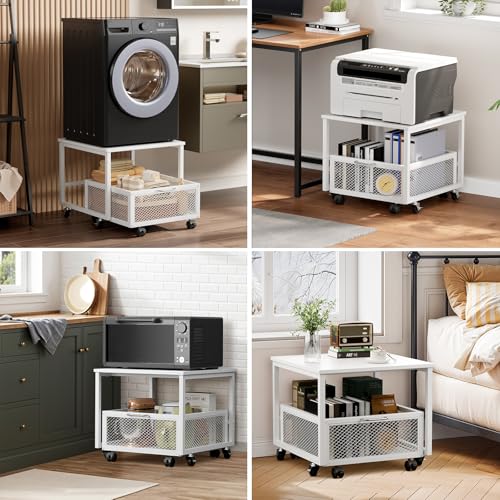 وارميهومي حامل ثلاجة صغير بعجلات قابلة للقفل مع عجلات قابلة للقفل، طاولة ثلاجة صغيرة بعجلات دوارة مع سلة للمنزل والمطبخ والمكتب، ابيض