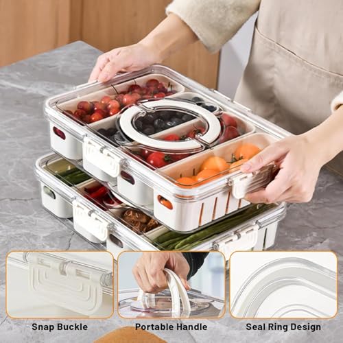 مصنوع من مادة بلاستيك PET آمنة للطعام أكثر سماكة ومتانة من المنظمات البلاستيكية العادية مع توافق للفريزر صندوق تخزين كبير بسعة 5 لتر مع 4 حاويات قابلة للإزالة بسعة 830 مل لكل منها، بأبعاد 31 سم × 24 سم × 7 سم لتلبية احتياجات التخزين المتنوعة يحتوي على 4 أقسام منفصلة تمنع اختلاط الطعام وتسمح بإعادة تعبئة الحاويات الفردية للتخزين المنظم غطاء محكم الإغلاق مع حلقة سيليكون و6 مشابك معززة يوفر إغلاقاً ممتازاً للحفاظ على نضارة المنتجات ومنع الروائح مثالي لتخزين الحبوب والبسكويت والسلطات والتوت والفواكه المجففة والمقبلات والمكسرات في الثلاجة أو الفريزر أو المطبخ أو المخزن