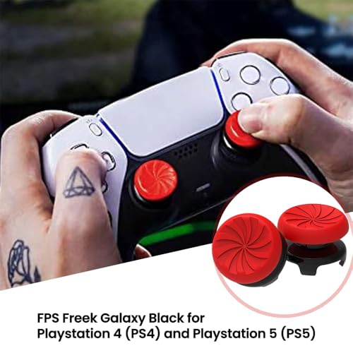 عصا ابهام فريك انفيرنو من اف بي اس فريك لجهاز بلاي ستيشن 4 وبلاي ستيشن 5 (PS5)، اغطية عصا الابهام بنمط جالكسي (2 مقعر مرتفع الارتفاع، احمر)