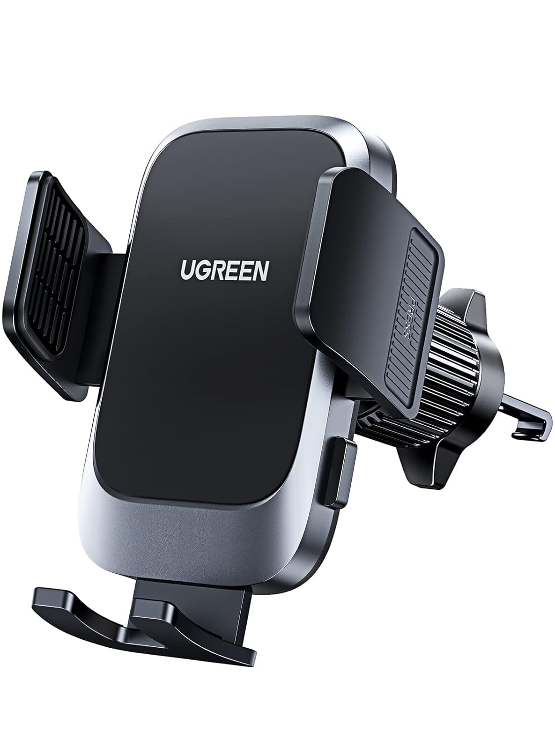 يوجرين حامل جوال للسيارة، [دوران 360 درجة لفتحة التهوية]، [فتح بزر واحد]، حامل هاتف محمول بخطاف معدني قوي، مناسب لهاتف ايفون 16/15/14/13، سامسونج S25/24/23، ملحقات الهواتف الذكية مقاس 4.7-7.2 انش