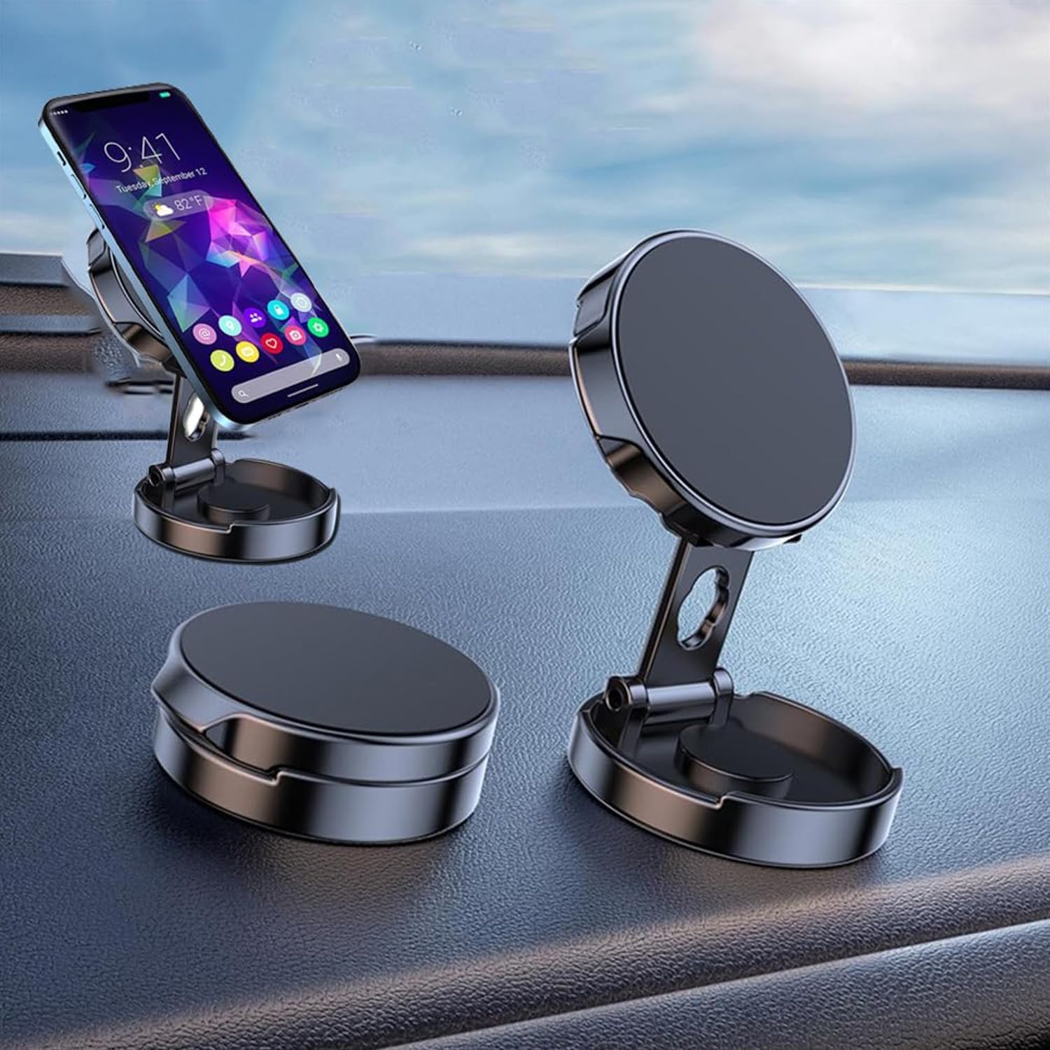 【تثبيت مغناطيسي قوي】 - يتميز بمغناطيس نيوديميوم N52 القوي الذي يمسك هاتفك بأمان حتى على الطرق الوعرة، مما يحافظ على ثبات جهازك أثناء القيادة دون أي اهتزاز أو انزلاق. 【عرض قابل للتعديل بزاوية 360 درجة】 - يوفر قدرة دوران كاملة مما يسمح لك بوضع هاتفك في الوضع الرأسي أو الأفقي من أجل التنقل الأمثل أو مشاهدة الفيديو أو المكالمات بدون استخدام اليدين. 【توافق عالمي للسيارة】 - يعمل على أي سطح أملس للوحة العدادات أو فتحة التهوية بفضل كوب الشفط القوي وتصميم مشبك التهوية، مناسب لجميع موديلات السيارات ومعظم الهواتف الذكية. 【شحن لاسلكي آمن】 - تصميم مغناطيسي يسمح بالشحن اللاسلكي دون انقطاع مع الحفاظ على هاتفك مثبتًا بشكل آمن، مثالي لمحركات الأقراص الطويلة عندما تحتاج إلى التشغيل. ️【حماية خالية من الخدوش】 - تتضمن لوحة معدنية رفيعة للغاية يتم توصيلها بشكل سري بحافظة هاتفك دون إتلاف جهازك، مما يحافظ على مظهر أنيق مع توفير تثبيت آمن.
