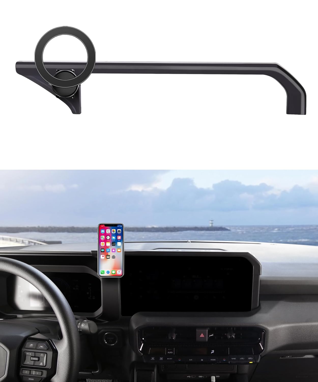 حامل جوال للسيارة من مازر ويلر لسيارة تويوتا لاند كروزر LC250 2024 2025 بمشبك ثابت للشاشة 8/12.3 انش، حامل موبايل دوار 360 درجة متوافق مع ماج سيف