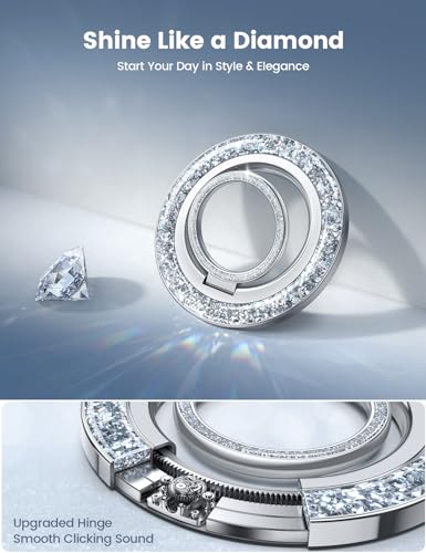 لاميكال حلقة جوال مغناطيسية لقبضة ماج سيف - [مغناطيس فائق] حامل حلقي متلألئ انيق مع [مفصل تروس مطور]، ملحق ماج سيف لايفون 17 16 15 14 برو ماكس بلس ميني، فضي لامع