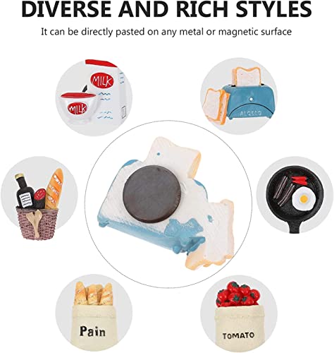 🍞【Durable Material】Refrigerator magnets are made up of resin and magnets, tasteless, non-toxic, safe and healthy, it can be well attached on the refrigerator, long service life, reuseful magnets. 🍞【No Shedding】The magnet is designed on the back of the product, firm adsorption and convenient transfer, you can transfer to other places you want to paste at any time. 🍞【Different Styles】You will receive 6 different styles of refrigerator magnets, such as bread basket, bread maker, pan, tomato bag, bread bag and milk. 🍞【Exquisite Gift】Our assortment of the graffiti decals is your right choice when choosing a gift for your friends, kids. These creative tourist souvenir; home, kitchen decor; special days gift; beautiful collection. 🍞【Wide Application】Perfect to pin notes, recipe, artwork on fridge, door, cabinet, locker, cubicle, any magnetic surface. soft material will avoid harming surfaces.