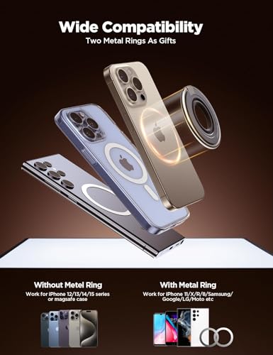 【مغناطيس دائم سهل التركيب】امسك هاتفك بأمان باستخدام 20 مغناطيسًا من الدرجة الأولى N52، حتى عند حمله بإصبع واحد في الحركة. 【قفل مغناطيسي مغناطيسي مزدوج الجوانب على جميع الأسطح المعدنية】يضمن التصميم المغناطيسي المبتكر مزدوج الجوانب تثبيتًا موثوقًا بهاتفك والتصاق المريح على الأسطح مثل حامل السيارة ماج سيف والثلاجات المعدنية ومعدات اللياقة البدنية. (ملاحظة: قم بإزالة الحلقة للشحن اللاسلكي!) 【مادة فاخرة لمتانة احترافية】مصنوع من خليط معدني من الزنك، خضع حامل الهاتف الدائري الخاص بنا لاختبارات صارمة، بما في ذلك أكثر من 50000 اختبار شد واختبار عزم الدوران المحوري المعدني. يضمن متانة استثنائية ويحمي الكاميرا بارتفاع 5 ملم. 【متوافق مع جميع الهواتف الذكية】حلقة معدنية واحدة متضمنة كهدية، مما يجعل حامل ايفون ماج سيف متوافق مع جميع الهواتف الذكية. متوافق مع أحدث الموديلات، بما في ذلك سلسلة ايفون 15/14/13/12 وايفون 11/11 برو/اكس/اكس اس/اكس اس ماكس/8/7، مع سلسلة سامسونج جالاكسي/نوت/فليب، وجوجل بيكسل، وأكثر من ذلك. 【متعدد الوظائف】هذا المنتج يحرر يديك، ويحمي هاتفك الذكي من السقوط والانزلاق العرضي أثناء وجودك في حافلة مزدحمة أو مترو الأنفاق. يعمل كمسند عملي، مما يوفر لك الكثير من الراحة أثناء مشاهدة الأفلام أو الاستماع إلى الموسيقى أو وضع المكياج أو إجراء مكالمات الفيديو أو حتى لعب الألعاب.