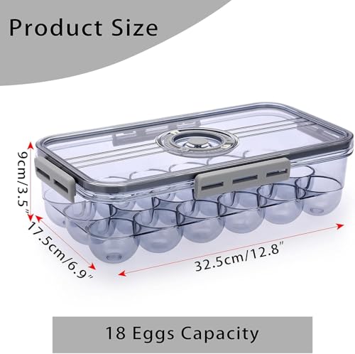 مصنوع من البلاستيك الخالي من BPA مع توافق الفريزر وتصميم شفاف لسهولة تحديد البيض يحمل 18 بيضة في حاوية مستطيلة مدمجة بأبعاد 32.5 × 17.5 × 8.9 سم لتوفير أقصى استفادة من مساحة الثلاجة يتميز بتصميم مستطيل قابل للتكديس مع لمسة نهائية مصقولة وآلية إغلاق بالالتواء يتضمن قرص تذكير زمني على الغطاء لتتبع تواريخ التخزين والحفاظ على نضارة البيض مثالي لتنظيم المطبخ والمخزن مع خيارات تخزين متعددة في الثلاجة والفريزر