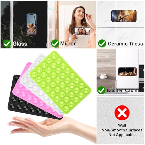 حامل حافظة الجوال مزدوج الجوانب من السيليكون، حامل قوي، حامل جوال شفط من السيليكون، حامل ملحقات لمقاطع الفيديو وصور السيلفي بدون استخدام اليدين، مناسب للتثبيت على المرآة أو السطح الأملس من يوبوا