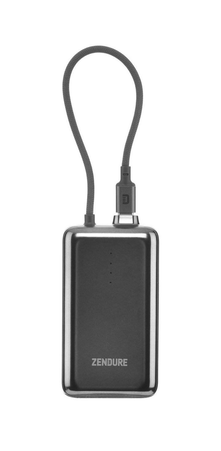 زندور سوبرميني هايبريد واط 45 مللي أمبير 20000 بنك طاقة مدمج بسعة PD, مع كابل USB-C مدمج وذكي, شحن سريع بتقنية (بي دي ), أحادي USB-C, 10000 مللي امبير, رمادي