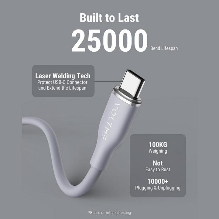 سلك شاحن ڤولتمي سلسلة موس من USB-C إلى USB-C بطول 1 م وبقوة 60 واط - رمادي