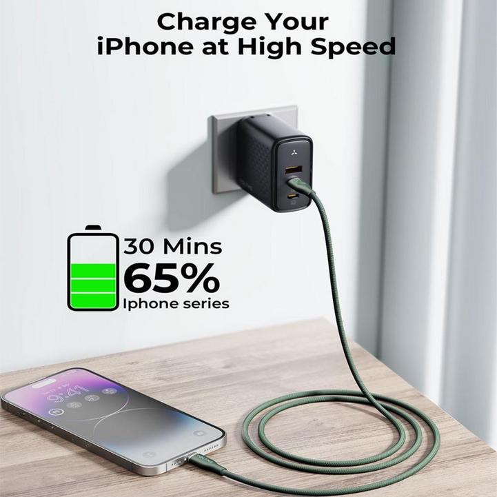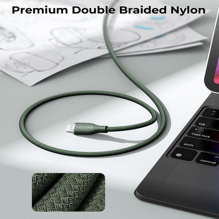 سلك شاحن ڤولتمي سلسلة روج مظفر من USB-C إلى آيفون بطول 2 م وبقوة 30 واط - أخضر
