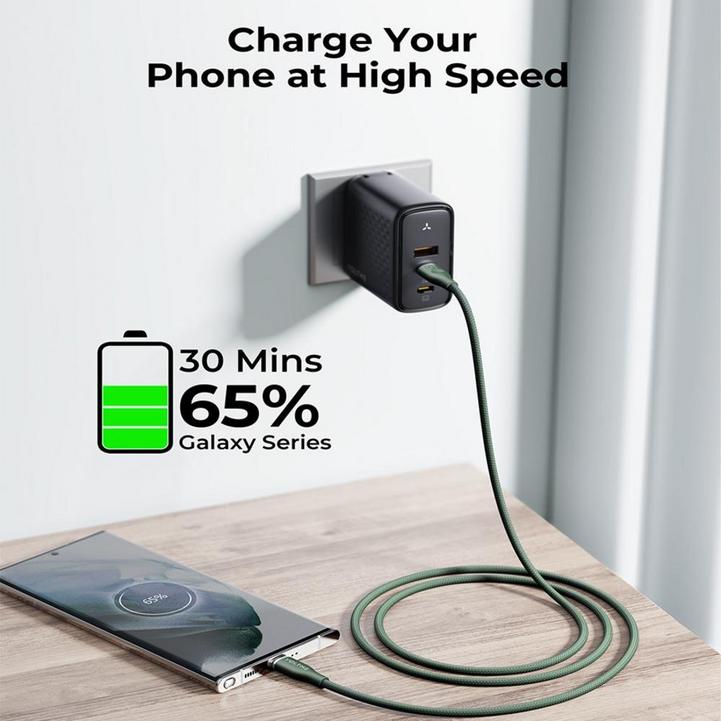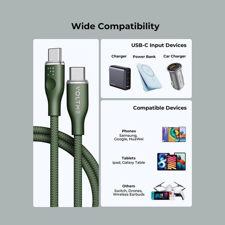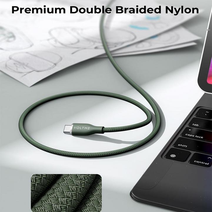 سلك شاحن ڤولتمي سلسلة روج مظفر من USB-C إلى USB-C بطول 1.8 م وبقوة 60 واط - أخضر