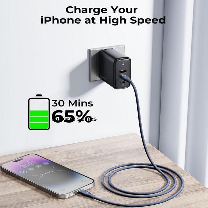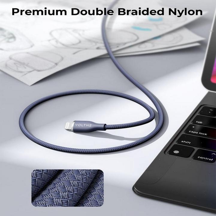 سلك شاحن ڤولتمي سلسلة روج مظفر من USB-C إلى آيفون بطول 1.2 م وبقوة 30 واط - أزرق
