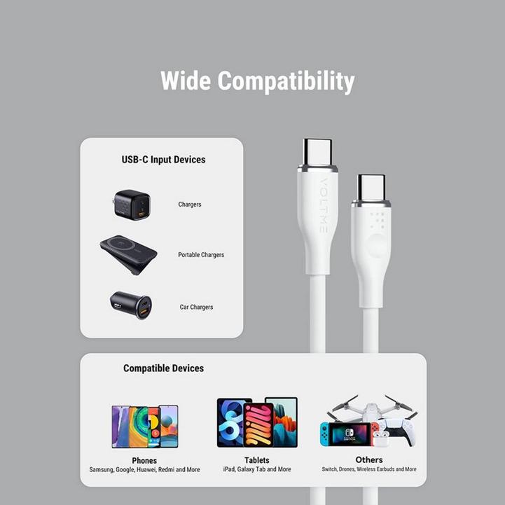 سلك شاحن ڤولتمي سلسلة موس من USB-C إلى USB-C بطول 1 م وبقوة 60 واط - أبيض