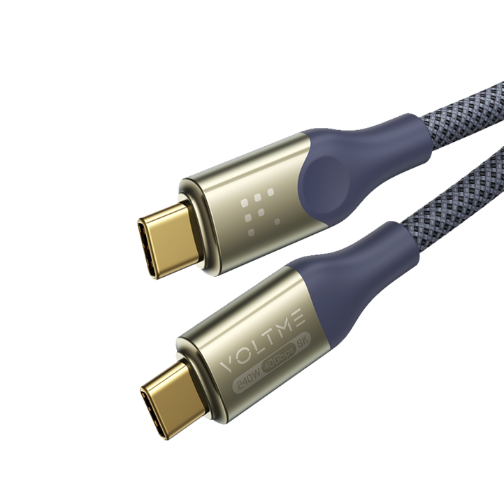 سلك شاحن ڤولتمي سلسلة باورلينك أوترون مظفر من USB-C إلى USB-C بطول 1.2 م وبقوة 240 واط - أزرق رمادي