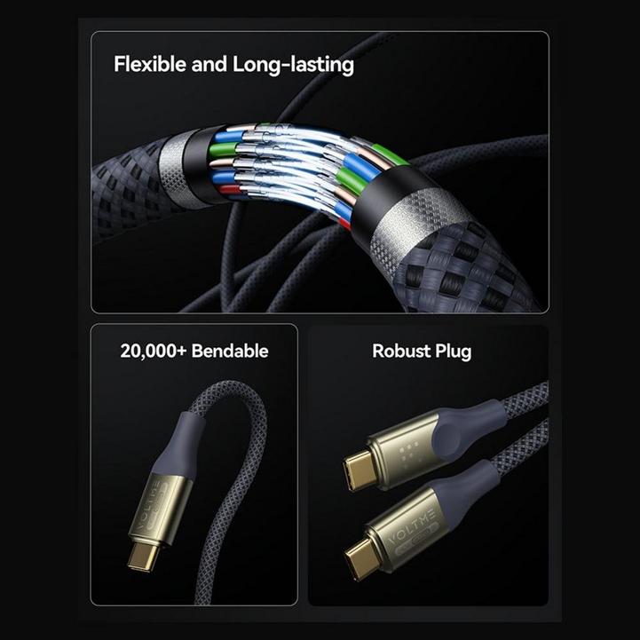 سلك شاحن ڤولتمي سلسلة موس من USB-C إلى USB-C بطول 1 م وبقوة 60 واط - رمادي
