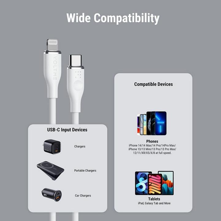 سلك شاحن ڤولتمي سلسلة موس من USB-C إلى آيفون بطول 2 م وبقوة 30 واط - أبيض