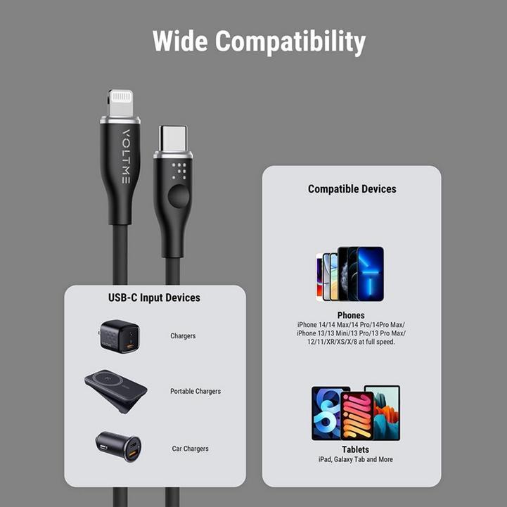 سلك شاحن ڤولتمي سلسلة موس من USB-C إلى آيفون بطول 1.2 م وبقوة 30 واط - أسود