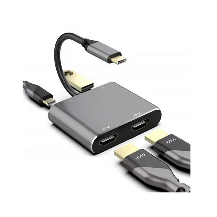 لافينتو محول من USB-C male الي USB-C female و AUX female طوله 30سم - أسود