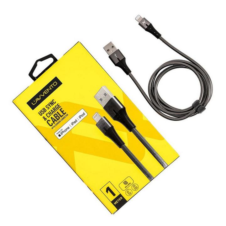 لافينتو كابل شحن يو اس بي الي ليتنج ذات التغليف المعدني معتمد لمنتجات ابل بطول 1 متر من لافينتو، أسود،
