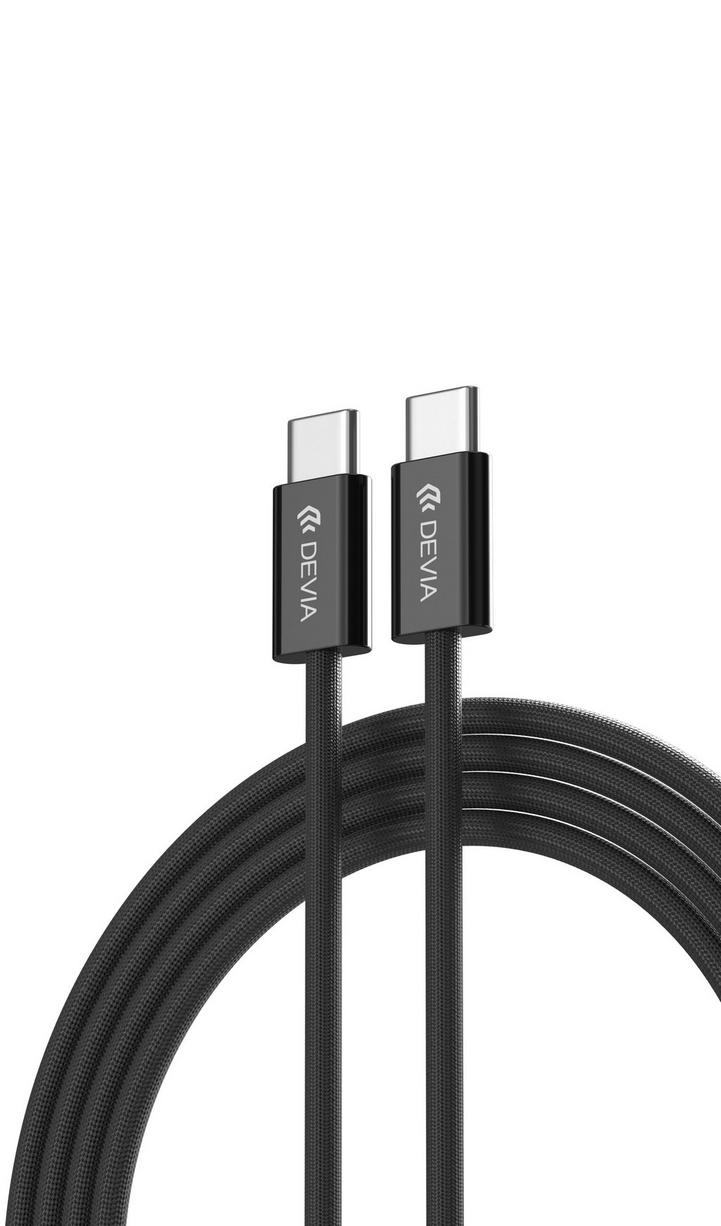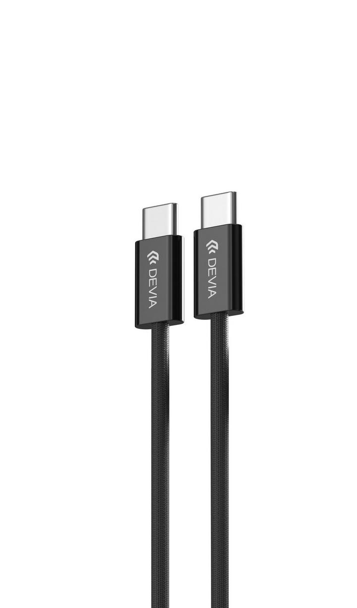 ديفيا كيبل شحن ونقل بيانات سريع منسوج من تايب سي الي تايب سي بقدرة خرج 60 وات /3 امبير مصنوع من مادة TBE النايلون مدفر سريع الشحن اسود اللون طول 1 متر