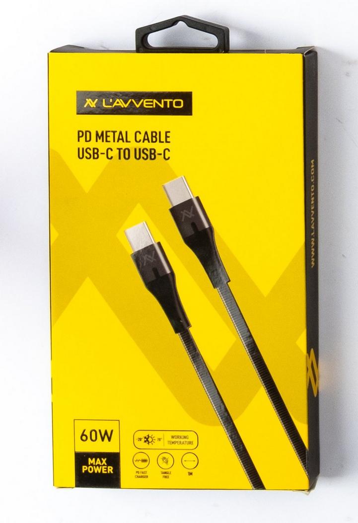 لافينتو كابل شحن USB-C إلى USB-C، تصميم نسيجي بتغليف ABS متين، 20 فولت 5 أمبير، 1 متر، فضي، 100 وات