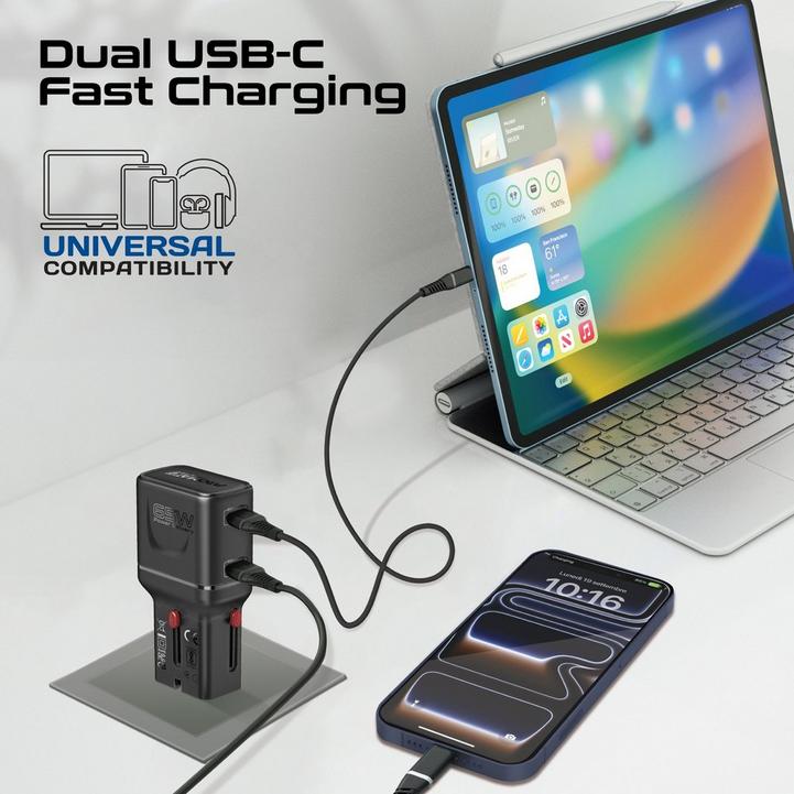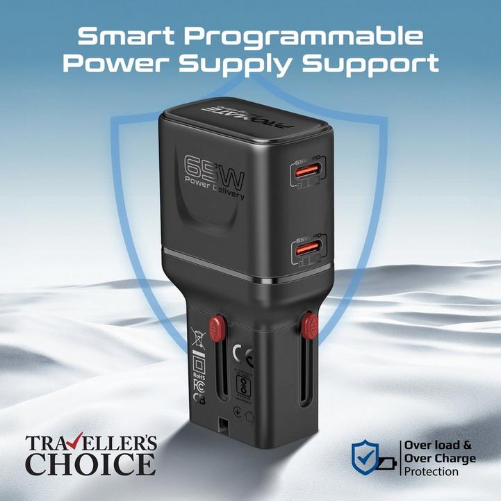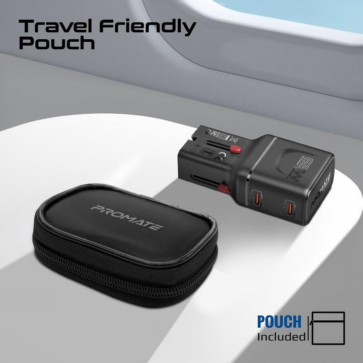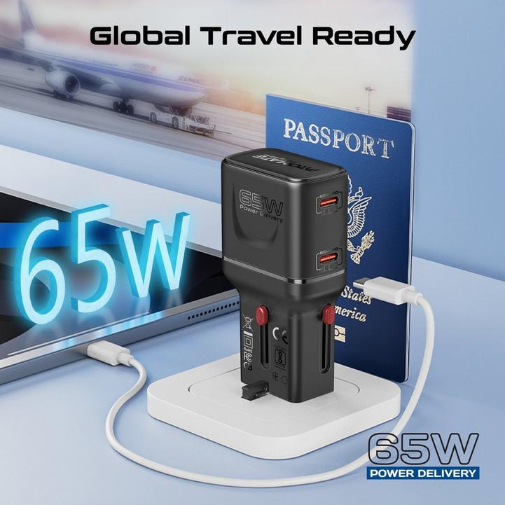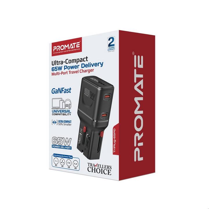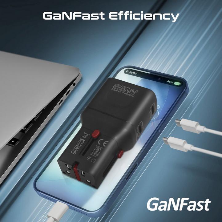 شاحن سفر بروميت GaNFast بقوة 65 واط، منفذ USB-C PD مزدوج