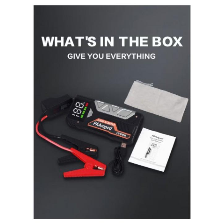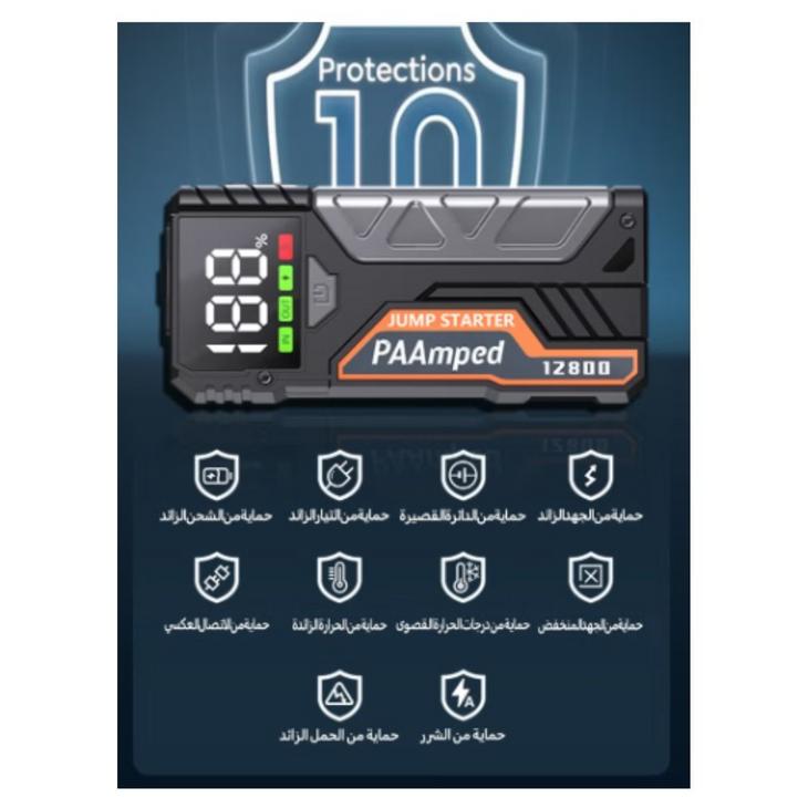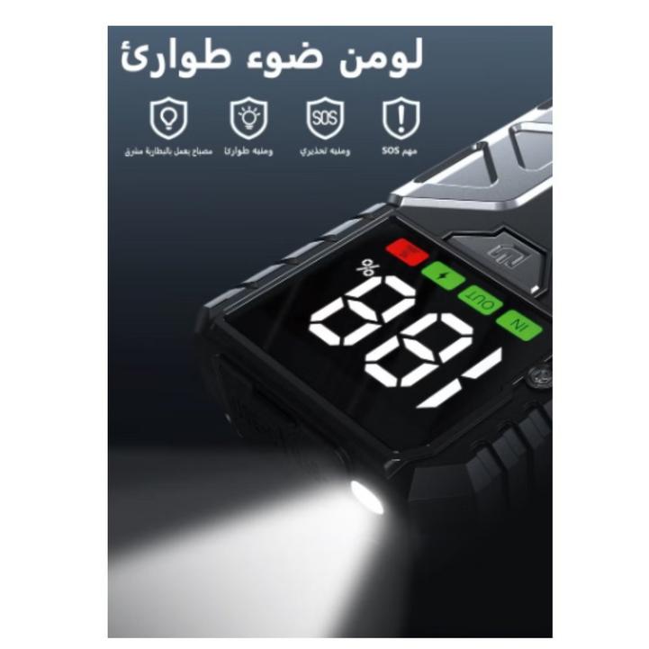 شاحن بطارية سيارة محمول 12800 مللي أمبير – مع شاحن 12فولت ومصباح LED