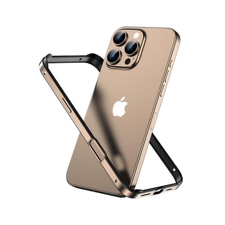 درِب، إطار معدني مدرّع، مع ممتص صدمات داخلي ناعم، لجهاز آيفون 16 برو ماكس، ذهبي صحراوي