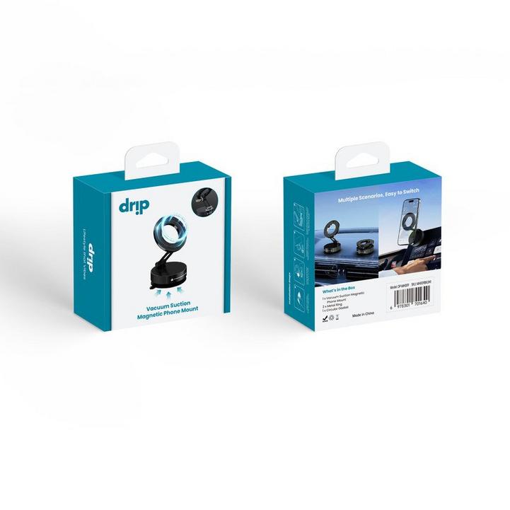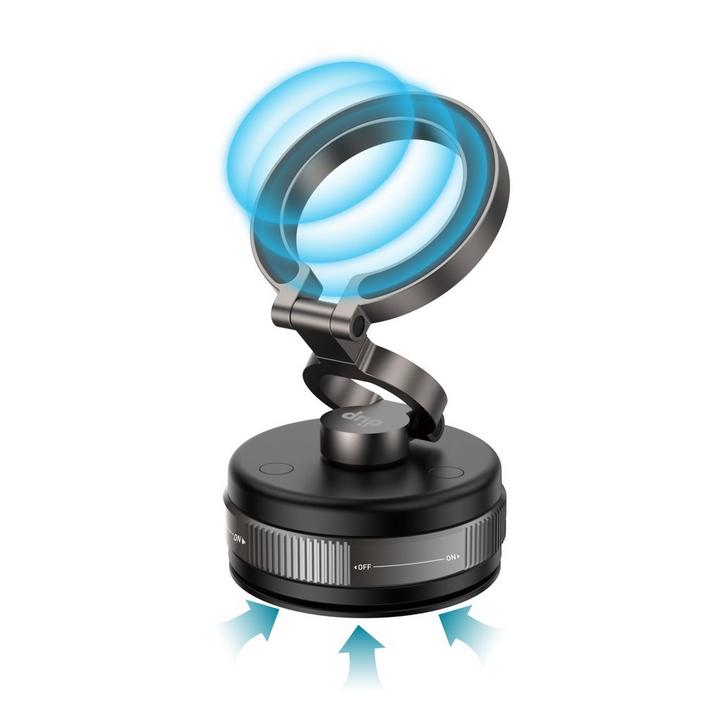 درِب، حامل هاتف مغناطيسي دوار 360° مع شفط الفراغ، أسود