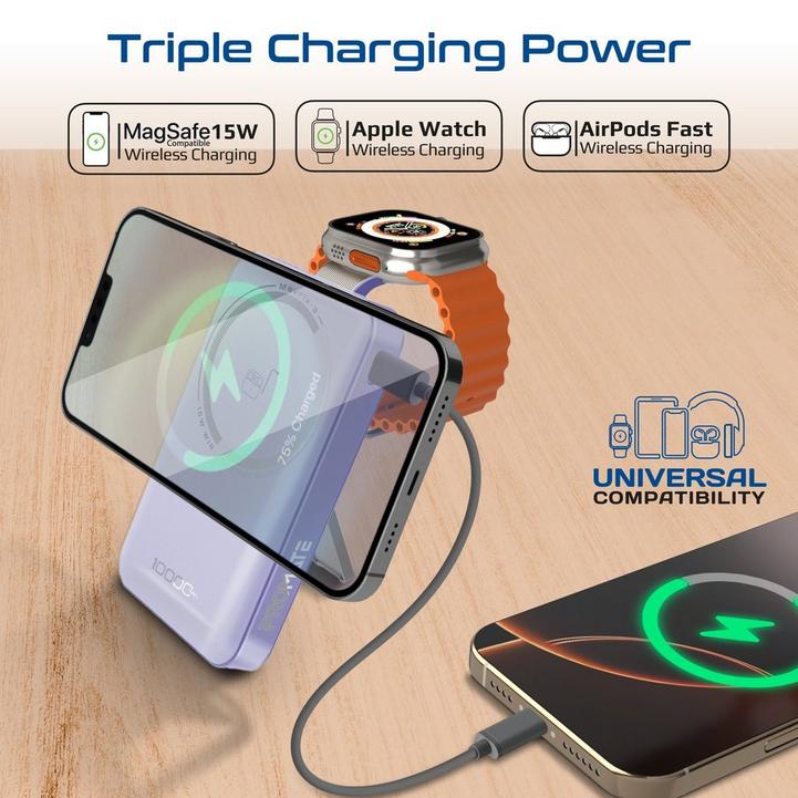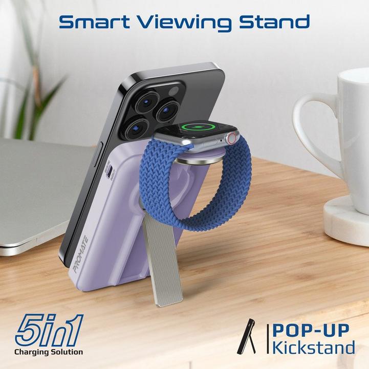 Promate بنك طاقة 3في1، 10000مللي أمبير، شحن MagSafe و20W وساعة