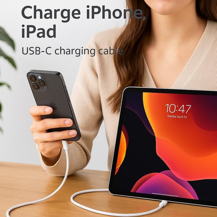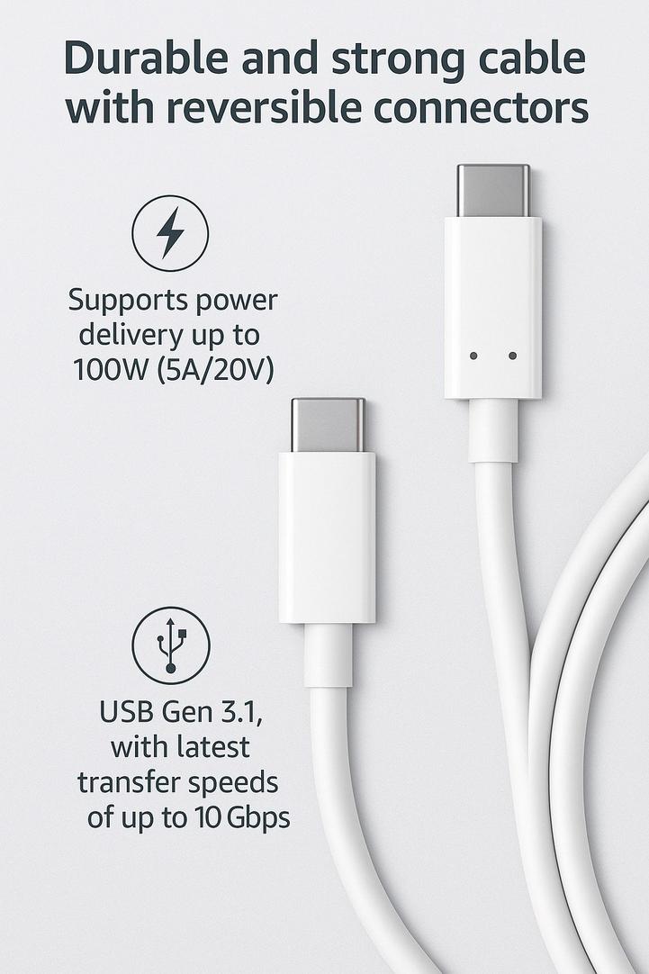 كابل USB-C إلى USB-C رئيسي ، 1 متر ، يدعم الشحن السريع PD حتى 100 واط