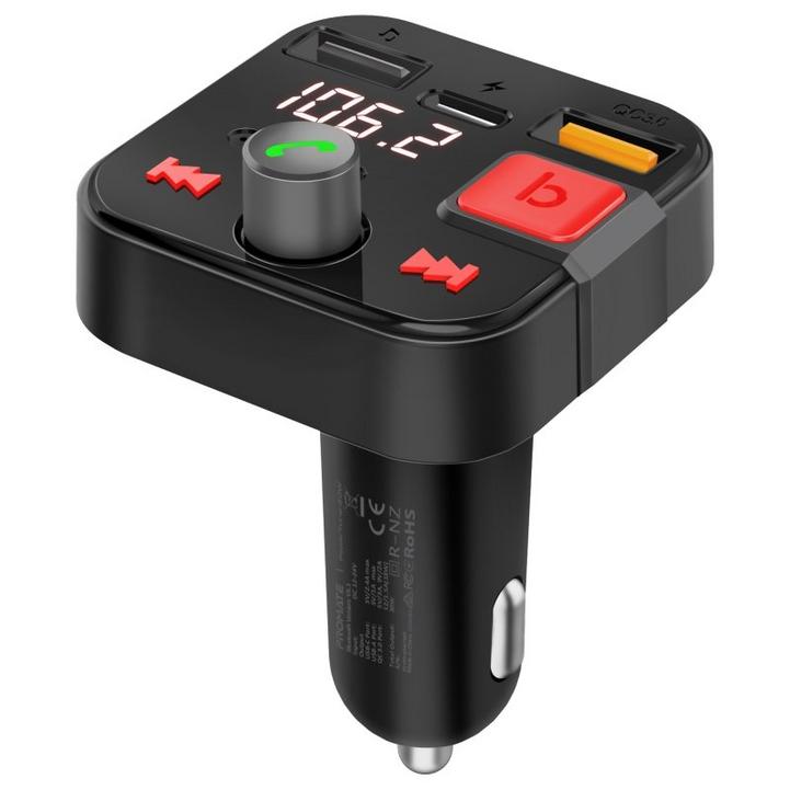 جهاز إرسال FM لاسلكي من بروميت ، طقم سيارة مزود بتقنية Bluetooth V5.1 داخل السيارة مع 18 واط Qualcomm QC 3.0 ، منفذ USB-C بقوة 12 واط ، منفذ وسائط USB ، ميكروفون إلغاء الضوضاء وشاشات السائل لأجهزة iPhone 13 ، Galaxy S22 ، PowerTune-30W