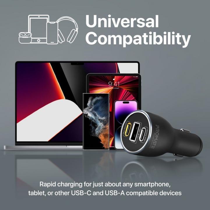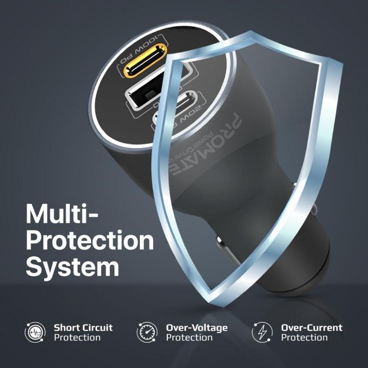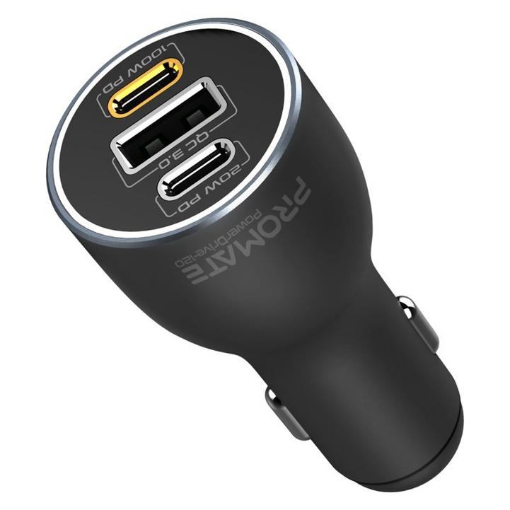 شاحن سيارة بروميت ، محول سيارة USB-C™ فائق السرعة بقوة 120 واط مع منافذ توصيل طاقة مزدوجة من النوع C™ 100 واط / 20 واط ، منفذ USB من Qualcomm QC 3.0 وحماية الشحن الزائد ، PowerDrive-120