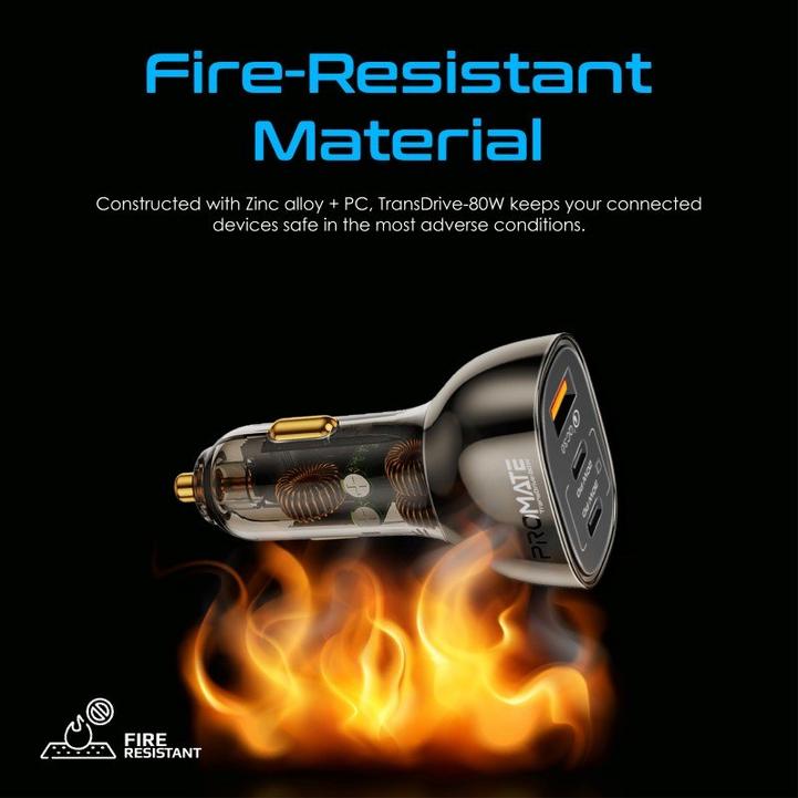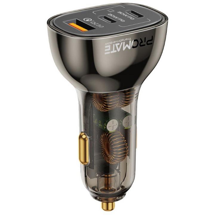 شاحن سيارة بروميت ، محول سيارة شفاف 80 واط سريع الشحن متعدد المنافذ مع منافذ Type-C مزدوجة ، منفذ Qualcomm QC 3.0 USB-A وحماية من الحرارة الزائدة لأجهزة iPhone و iPad Air و TransDrive-80W