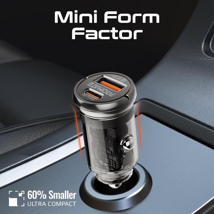 شاحن سيارة بروميت ، محول سيارة شفاف بقوة 65 واط فائق الصغر مع منفذ USB من النوع C ، منفذ Qualcomm QC 3.0 USB-A ، مقبض صغير وحماية من الحرارة لأجهزة iPhone و MacBook Pro و TransDrive-65W