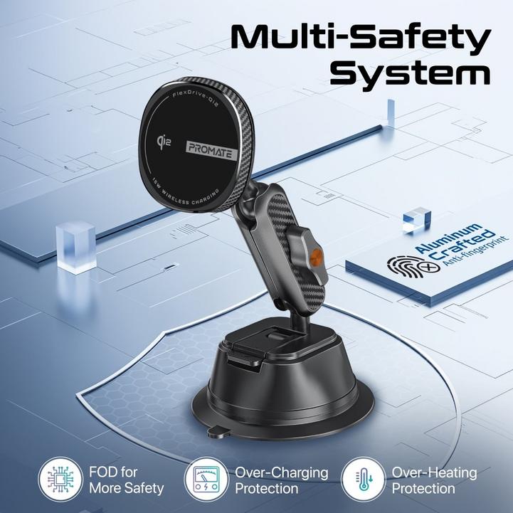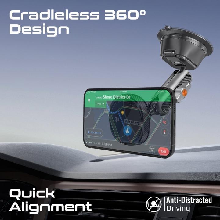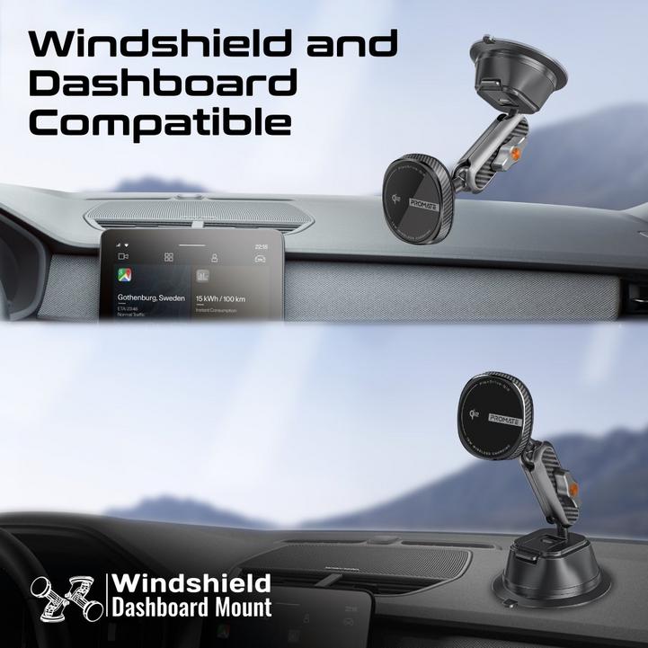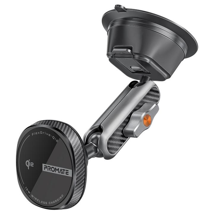 بروميت شاحن سيارة لاسلكي بقوة 15 وات ماج سيف، معتمد من كيو 2 مع حامل ذراع قابل للتعديل وطول كابل 1 متر، قابل للدوران 360 درجة