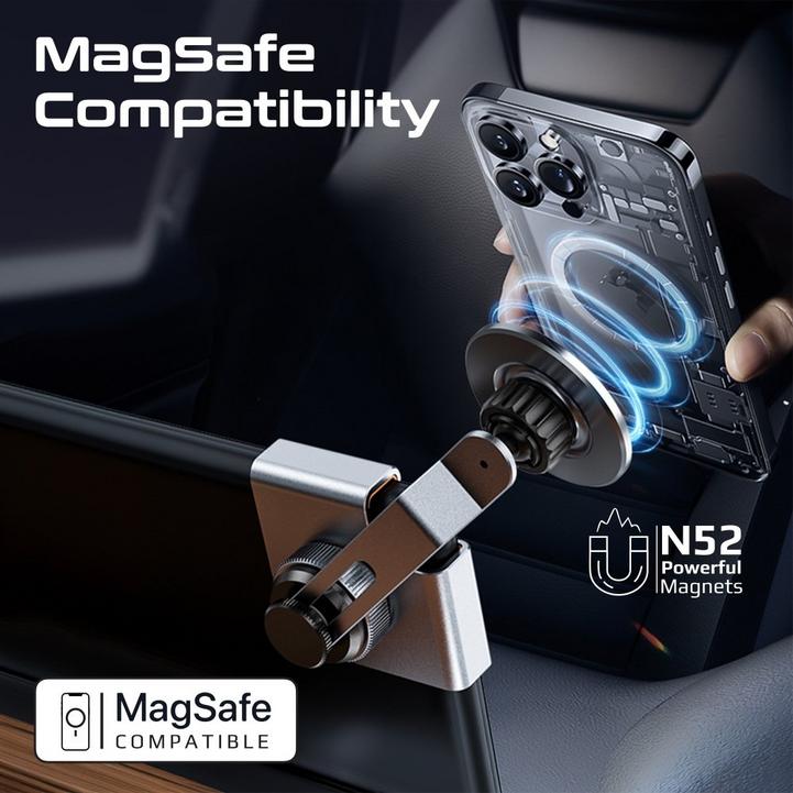 بروميت حامل مغناطيسي للجوال على شاشة السيارة، مصنوع من الألومنيوم، يدور 360 درجة ومتوافق مع ماج سيف، تصميم مبتكر بدون حامل، مغناطيس قوي N52