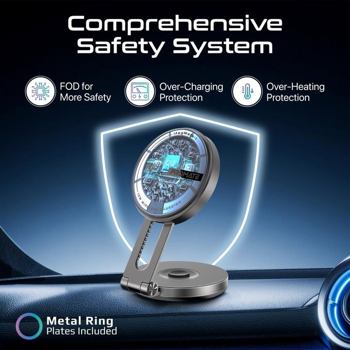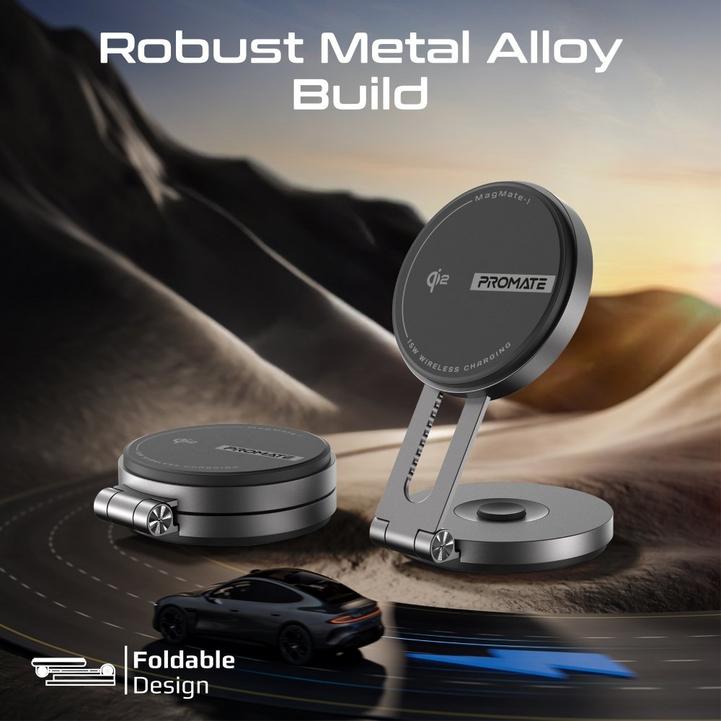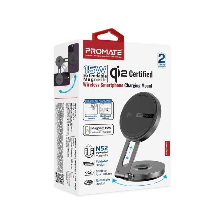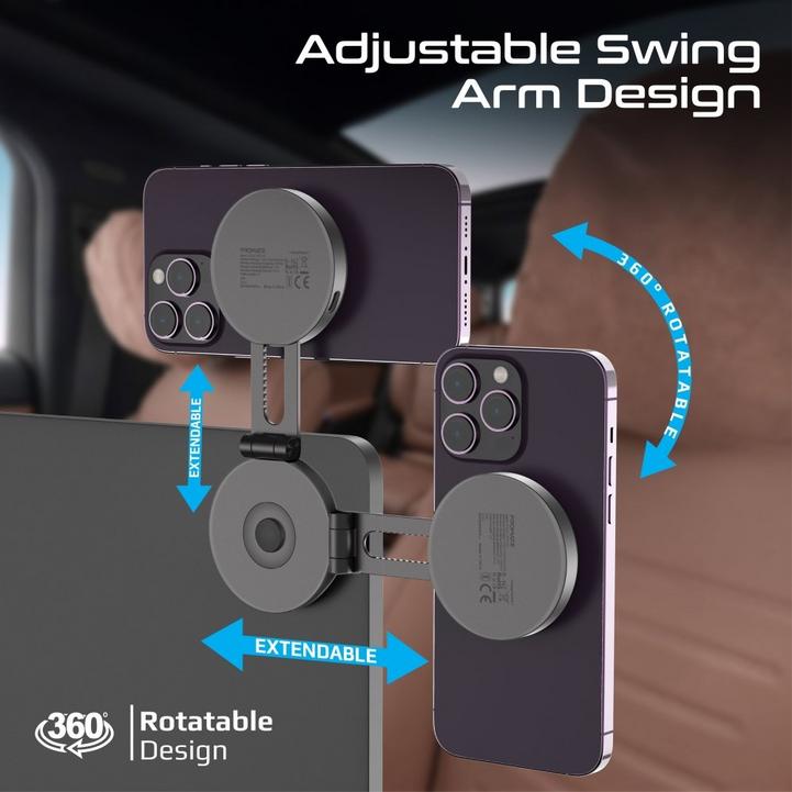 بروميت حامل وشاحن سيارة لاسلكي مغناطيسي معتمد للجوال مع شحن سريع 15 وات Qi2 متوافق مع MagSafe، وذراع دوار قابل للتمديد، ولوحة القيادة ومتوافقة مع شاشة LCD