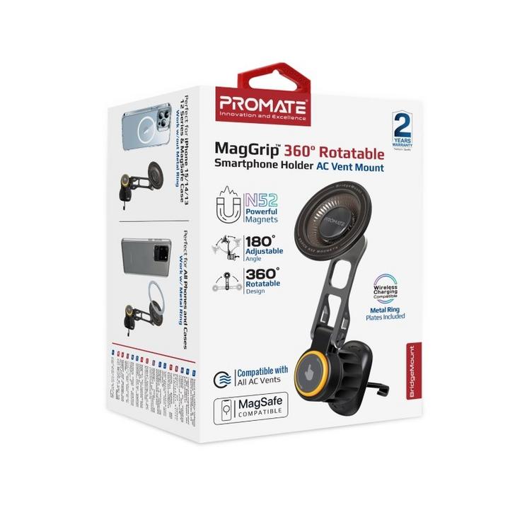 بروميت حامل جوال مغناطيسي للسيارة ،حلقة مغناطيسية لفتحة تكييف الهواء مع مغناطيس قوي N52، دوران 360 درجة، دعم متعدد الزوايا