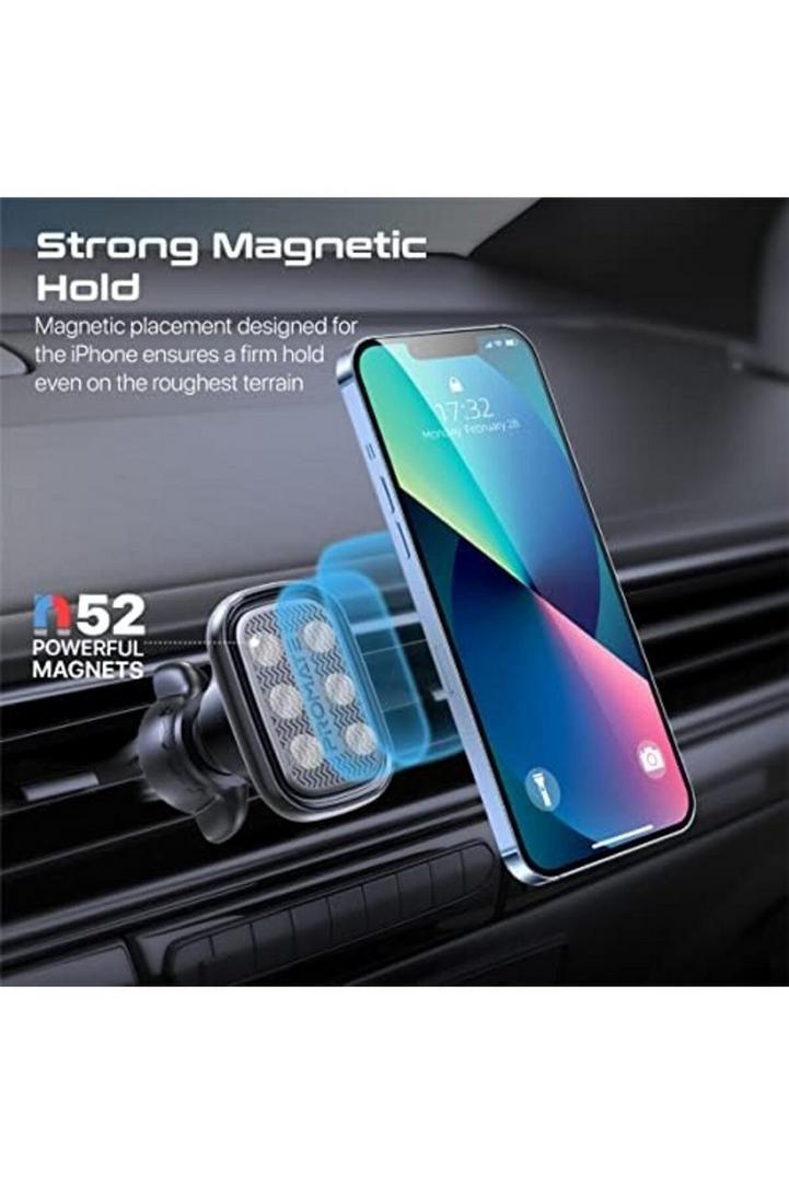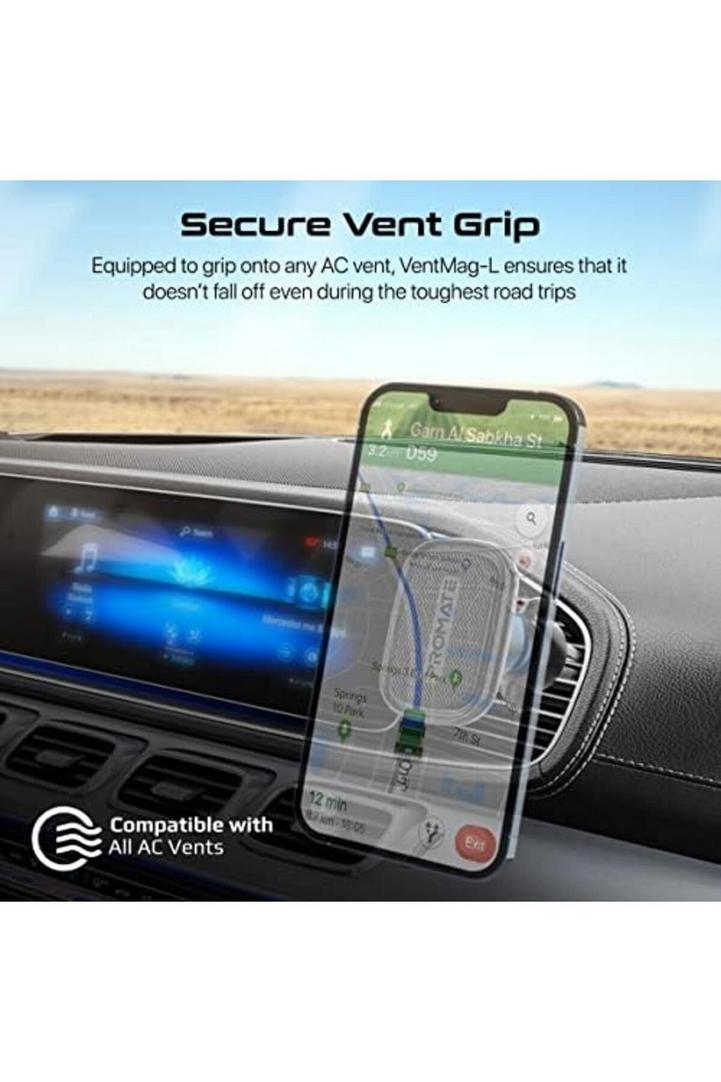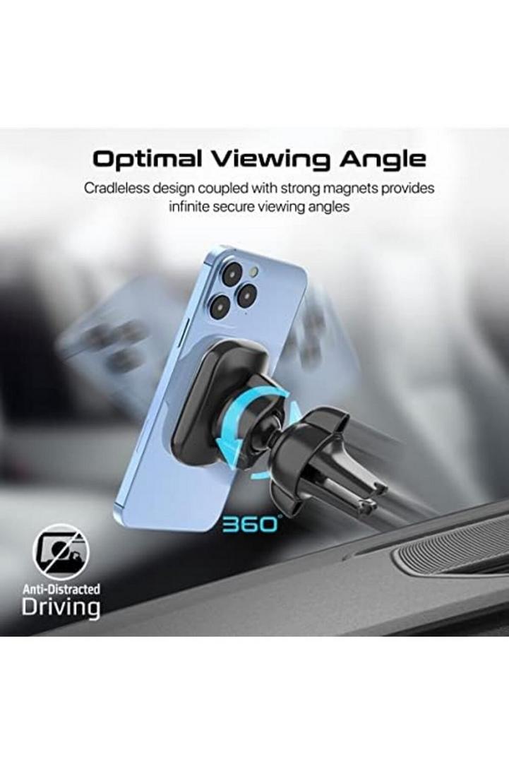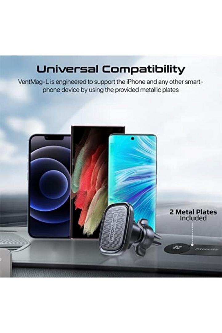 حامل سيارة مغناطيسي من بروميت ، حامل هاتف عالمي بدون مهد بفتحة تهوية بتصميم قابل للدوران بزاوية 360 درجة ، اهتزاز منخفض ، قبضة مانعة للانزلاق ولوحة حلقة معدنية لأجهزة iPhone 14 و Samsung S23 و VentMag-L