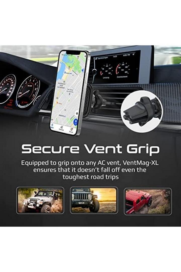 حامل سيارة مغناطيسي من بروميت ، حامل هاتف عالمي بدون مهد بفتحة تهوية بتصميم قابل للدوران بزاوية 360 درجة ، اهتزاز منخفض ، قبضة مانعة للانزلاق ولوحة حلقة معدنية لجهاز iPhone 13 ، Samsung S22 ، VentMag-XL